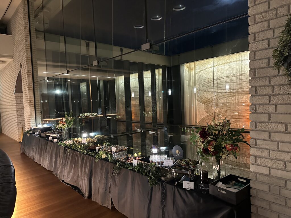 ケータリングは、盛り付けから片付けまでスタッフが常駐します。おすすめはやはりお寿司付きの和洋折衷プラン!