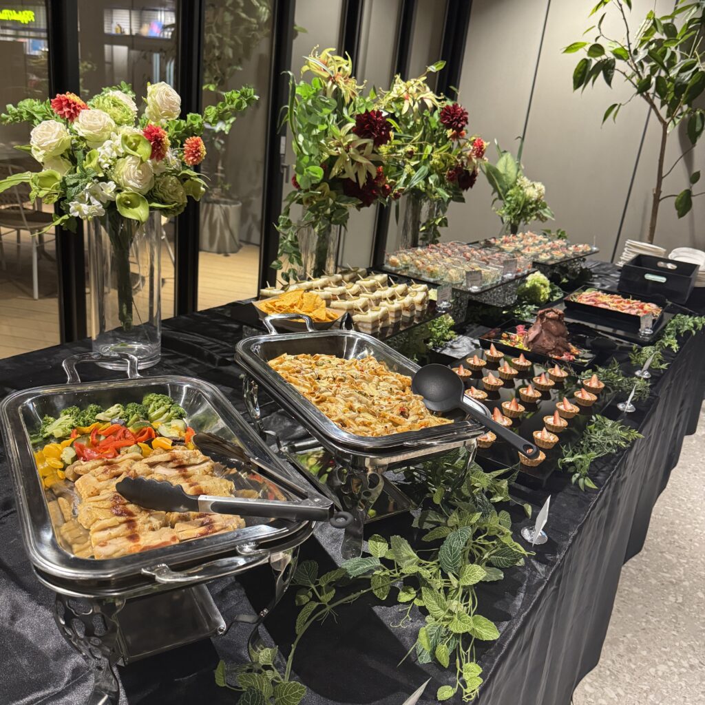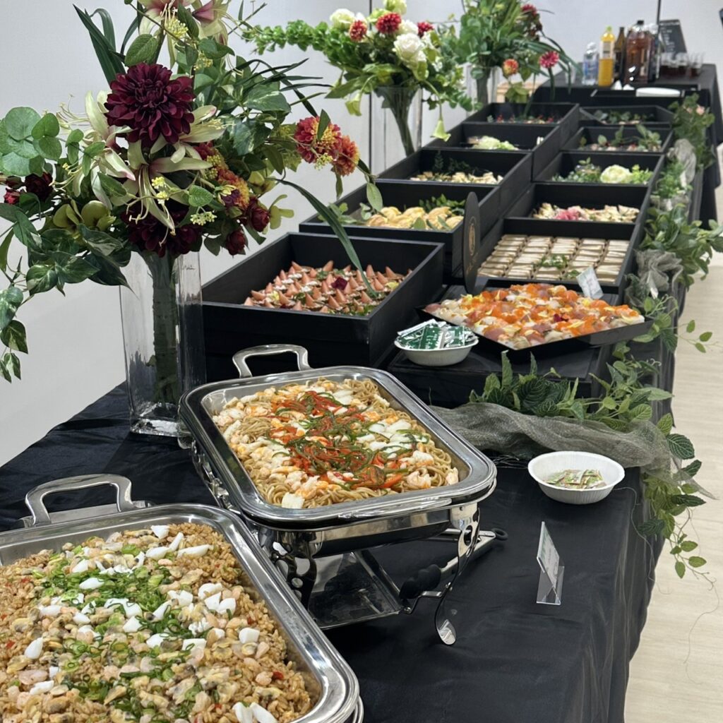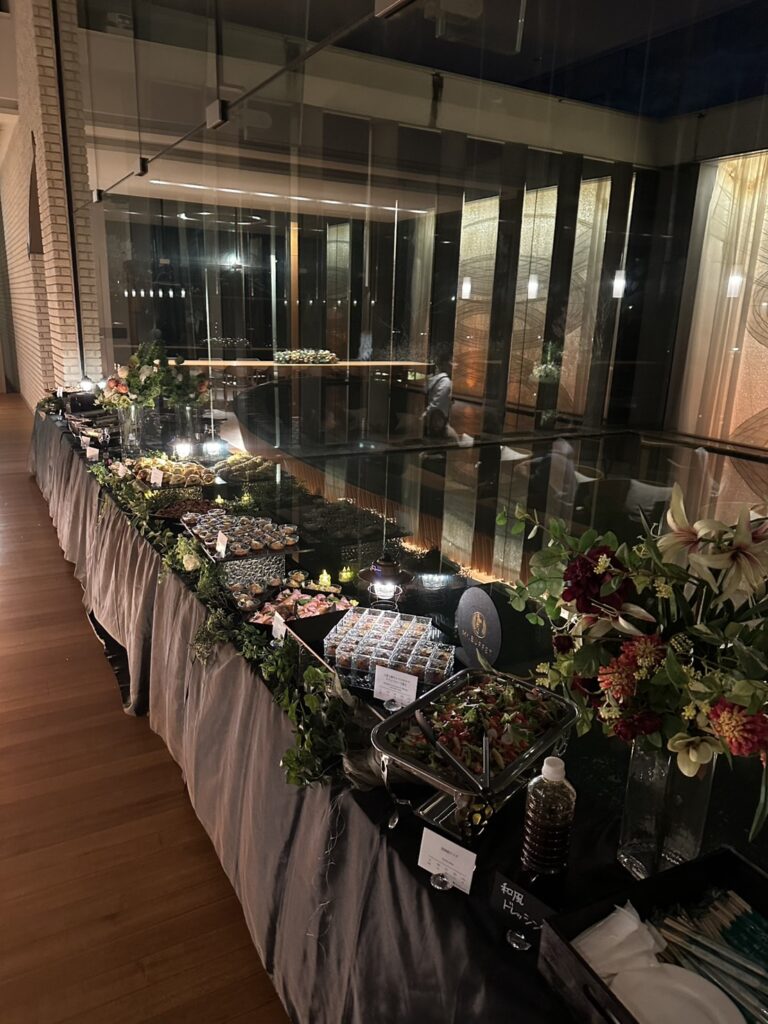 「参加者の皆さんから、『料理が豊富でどれも美味しかった』との声が多く寄せられました。特に、『ローストビーフとお寿司が最高』との声が多かったです。また、見た目にも美しい盛り付けが会場に華を添え、写真映えする料理が思い出に残るひとときとなりました。