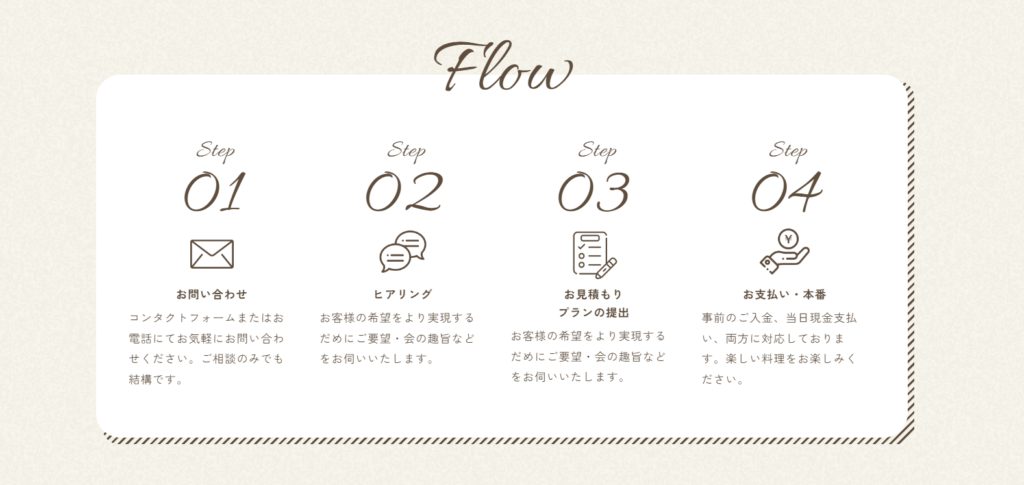 さらに、お客様のご希望や予算に合わせたオーダーメイドのプランを提案。大人数のケータリングでお困りの際は、是非私ご相談ください。